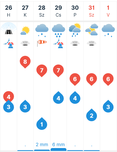 A HÉT ELEJÉN MÉG ENYHÉBB, DE VÁLTOZÉKONY IDŐ JELLEMZI TÉRSÉGÜNKET. HÉTFŐN ÉS KEDDEN TÖBBNYIRE FELHŐS LESZ AZ ÉG, HELYENKÉNT GYENGE CSAPADÉKKAL, A NAPPALI HŐMÉRSÉKLET +3…+4 °C, HAJNALBAN 0 °C KÖRÜLI ÉRTÉKEKKEL. SZERDÁTÓL LEHŰLÉS KEZDŐDIK, A CSAPADÉK ESŐBŐL EGYRE INKÁBB HAVASESŐBE, MAJD HÓBA VÁLTHAT, KÜLÖNÖSEN CSÜTÖRTÖKÖN, AMIKOR MÁR TARTÓSABB CSAPADÉK IS ELŐFORDULHAT. A NAPPALI MAXIMUMOK +1…+2 °C, HAJNALBAN 0 °C KÖRÜLI VAGY KISSÉ FAGYPONT ALATTI HŐMÉRSÉKLETEK VÁRHATÓK. PÉNTEKEN ÉS SZOMBATON FELHŐS, SZELESEBB IDŐ VALÓSZÍNŰ, ELSZÓRTAN GYENGE CSAPADÉKKAL. A NAPPALI HŐMÉRSÉKLET +2…+3 °C, HAJNALBAN -1…0 °C KÖRÜL ALAKULHAT, ÍGY CSÚSZÓS UTAK KIALAKULÁSA SEM KIZÁRT. VASÁRNAPRA KISSÉ NYUGODTABB IDŐ KÖRVONALAZÓDIK, CSAPADÉK MÁR CSAK ELSZÓRTAN FORDULHAT ELŐ, A HŐMÉRSÉKLET NAPKÖZBEN +3 °C KÖRÜL ALAKULHAT.